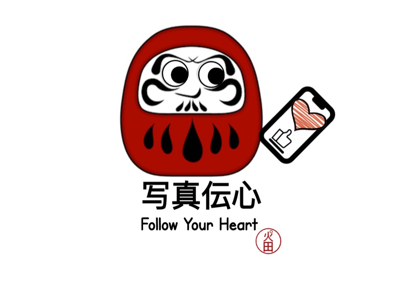 以心伝心 A once in a lifetime moment. Appreciating each moment- and the connection between two people that moment allows. We are losing that in the digital age, replacing human contact with likes and follows. 写真伝心, a fake feeling of connection. ‘HOLLOW your heart’ feels to negative so trying to cheer it up with follow your heart. Like the things you love.