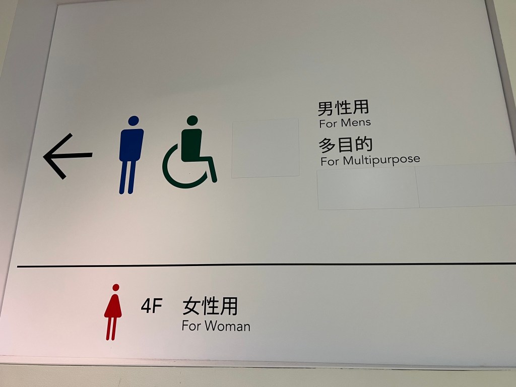 In the sometimes urgent need of finding, and using, a bathroom this is understandable and actionable. The icons are clear enough on their own that the text isn’t even necessary.