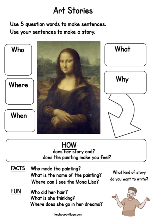 Do this with art. Paintings and sculptures. My example uses the Mona Lisa which in some ways is very simple, the painting looks like a picture. What happens with work by somebody like Jackson Pollock? They are crying out with a passion beyond words. What a wonderful opportunity for us to dive in with English.